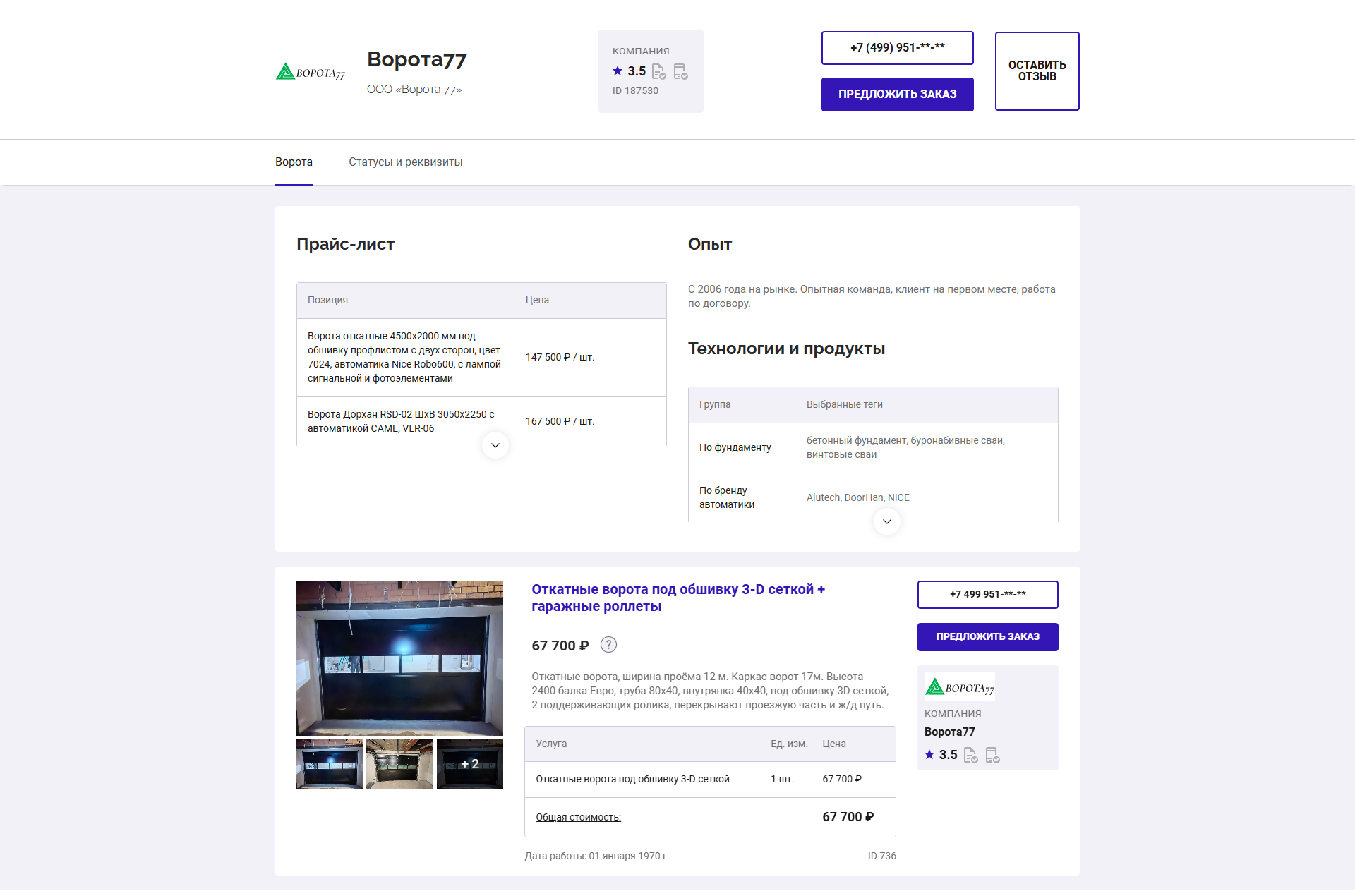 Даже в рамках бесплатной версии платформы вы получите отдельную директорию с подробным описанием ваших услуг и цен. Пример: